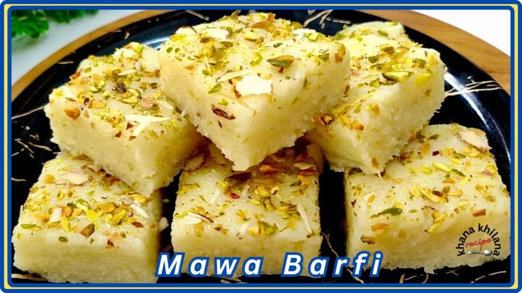 Welcome to the khana khana recipe Blog. Today we have told you about the Mawa Barfi in detail. We told you to put mawa in a non-stick pan and roast it for 10 minutes, then add sugar to it after cooking for 10 minutes, add chopped dry fruits and cardamom powder and mix it, after it cools down, put it in a square or round plate, spread it to a thickness of 1 inch, garnish it with chopped pistachios and almonds, freeze it for 2 to 3 hours, after that cut it into 11.5-inch square size pieces, take it out in a plate and serve it fresh. Do write to us for any kind of advice and suggestions. We respect your valuable suggestion. Thank you.