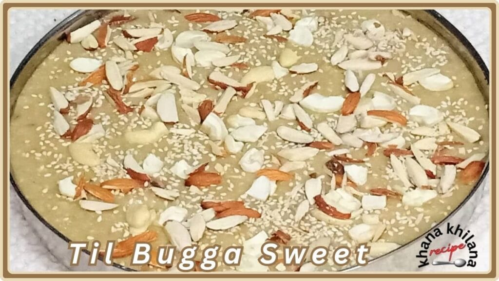 Welcome to the Khana Khilana Recipe Blog. Today we have told you about Til Bugga Sweet. In this recipe, We told you to clean the white sesame seeds, roast them lightly on low flame, and then grind them coarsely. Roast the mawa lightly on medium flame. Mix the ground sesame seeds and mawa in one place, add powdered sugar, add green cardamom powder, and chop. Mix dry fruits and make round laddus with the help of your hands. After 2 hours they come in their perfect shape and then serve them to eat. We hope you enjoy this recipe. Which recipe do you want to know about please write us our next recipe on the blog will be the same. Do write to us for any kind of advice and suggestions. We respect your valuable suggestion. Thank you.
