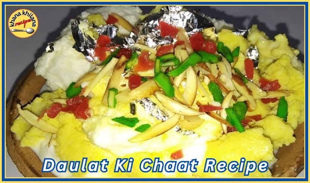 Welcome to the Khana Khilana Recipe Blog. Today we have told you about Daulat Ki ChaatRecipe. In this recipe, We told you that after boiling the milk and cooling it, malai and cream of tartar are mixed inside it and kept in the fridge on high cooling for 8 to 10 hours. After 8 hours, it is taken out from the fridge and stirred slowly with a hand whisk to froth it. After that, froth is prepared by mixing saffron. To do the survey, white froth is sprinkled with yellow froth and caster sugar, roasted mawa is added, dry fruits are sprinkled and silver work is used for the survey. We hope you enjoy this recipe. Which recipe do you want to know about please write us our next recipe on the blog will be the same. Do write to us for any kind of advice and suggestions. We respect your valuable suggestion. Thank you.